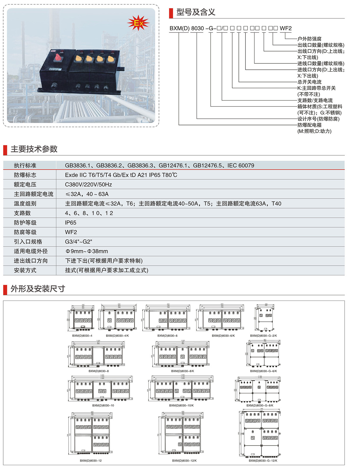 BXM(D)8030系列防爆防腐照明(动力)配电箱(IIC、Ex tD)
