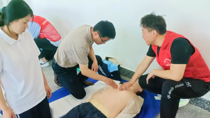 在淮南市红十字急救站淮南卫校站点进行考察调研时,急救培训员向来校考察的校领导展示了我校应急救护培训手册、现场演示了心肺复苏等急救内容,各校领导对我校应急救护相关培训课程给予高度肯定。希望以此次考察交流为契机,积极寻求义务教育与技能培训对接融合,提升学生应急救护水平,树立学生积极投身职教奉献社会的精神。