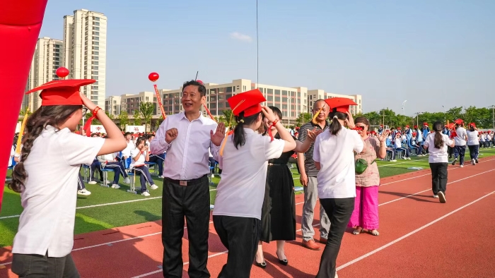 仪式现场被浓浓的温情与爱意包围。家长代表在发言中,以“一封家书”分享了对孩子成年的期望和祝福,字里行间流淌着真挚和恩情;学生代表在发言中,表达了对父母养育之恩、对老师们和学校谆谆教诲的感激之情,更表达了成年后将以更加饱满的热情投入学习和生活,不负韶华,砥砺前行的决心。