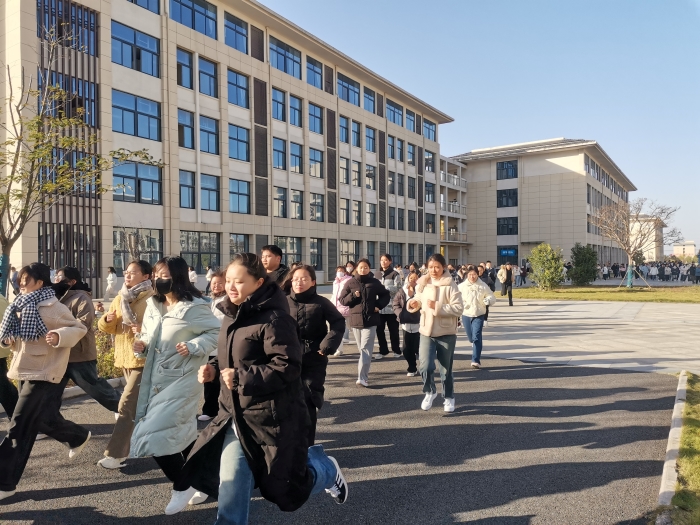 当日警报拉响瞬间,教学楼内各班级反应迅速。任课教师立即暂停授课,化身 “应急指挥员”,按照预定方案组织学生避险,教师们带领学生沿着既定疏散路线稳步、快速撤离。各楼层、各转角都有疏散引导员值守,确保疏散队伍有序前行、避免拥堵,师生们配合默契,行动紧凑,仅用时四分钟,全体师生便成功撤出教学楼,又在五分半钟内于操场上按班级整齐列队站好,全程秩序井然,充分展现出良好的纪律性与团队协作精神。