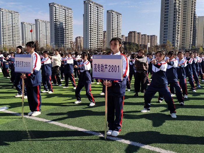 伴随着悠扬舒缓的古典乐曲,各参赛班级身着统一校服,精神抖擞、队列整齐,抬手、伸臂、转体、弯腰等动作规范连贯、刚柔并济。调理脾胃时舒展大方,摇头摆尾时协调流畅,整套动作如行云流水,既展现了八段锦 “松紧结合、动静相兼” 的功法精髓,又彰显了当代中职学生朝气蓬勃、奋发向上的精神风貌。