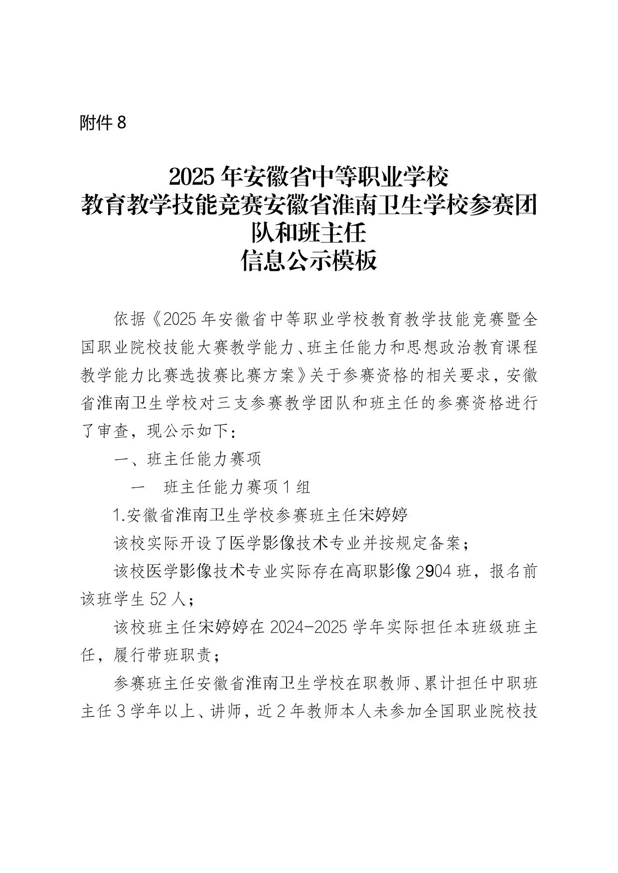 2025年安徽省中等职业学校教育教学技能竞赛bb贝博艾弗森官方网站参赛团队和班主任信息公示