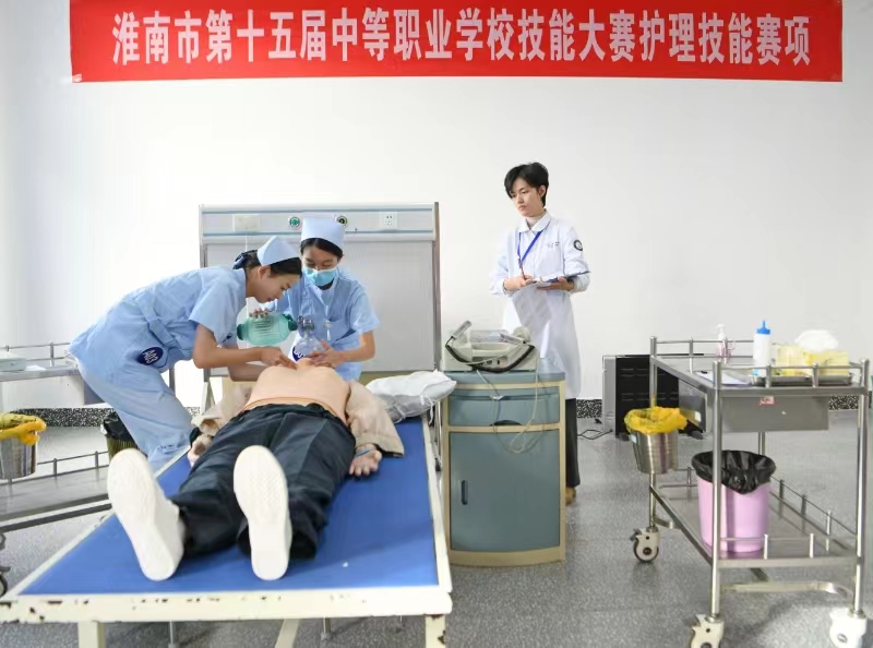 大赛点亮人生,技能改变命运。技能竞赛既是提升团队协作能力的重要途径,也是展示技能水平的重要舞台,同时,也是职业院校岗课赛证融通的重要环节。12月9日,淮南市第十五届中等职业学校技能大赛隆重开幕。淮南市15所中职学校435名选手参加护理、康复、汽车维修、电子商务运营等25个项目赛项的激烈角逐。